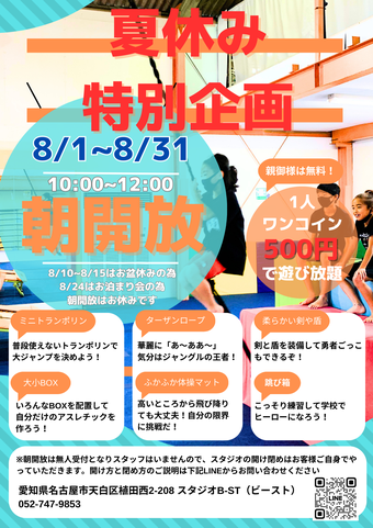 生徒じゃなくもOK!3歳までと付き添いの親御様は無料!